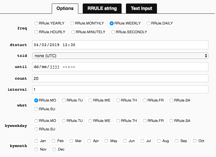 A quick-start primer on RRule with a live tester link to craft and validate recurring schedules fast.